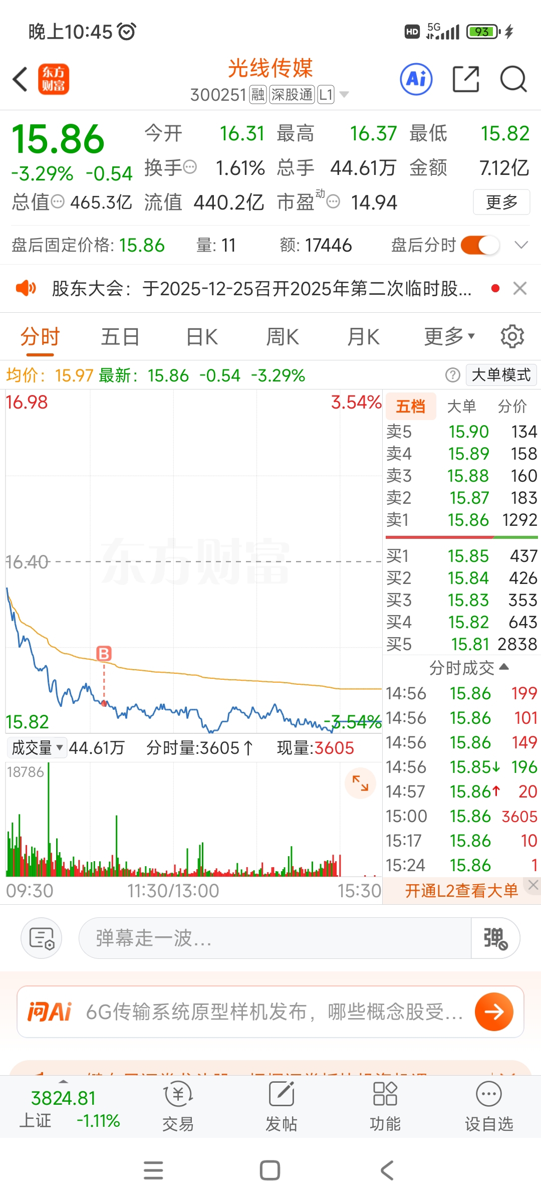 兄弟们,十二月份星尘重仓赔惨了,今天将剩余资金梭哈了光线传媒,能赚钱出来吗?这一