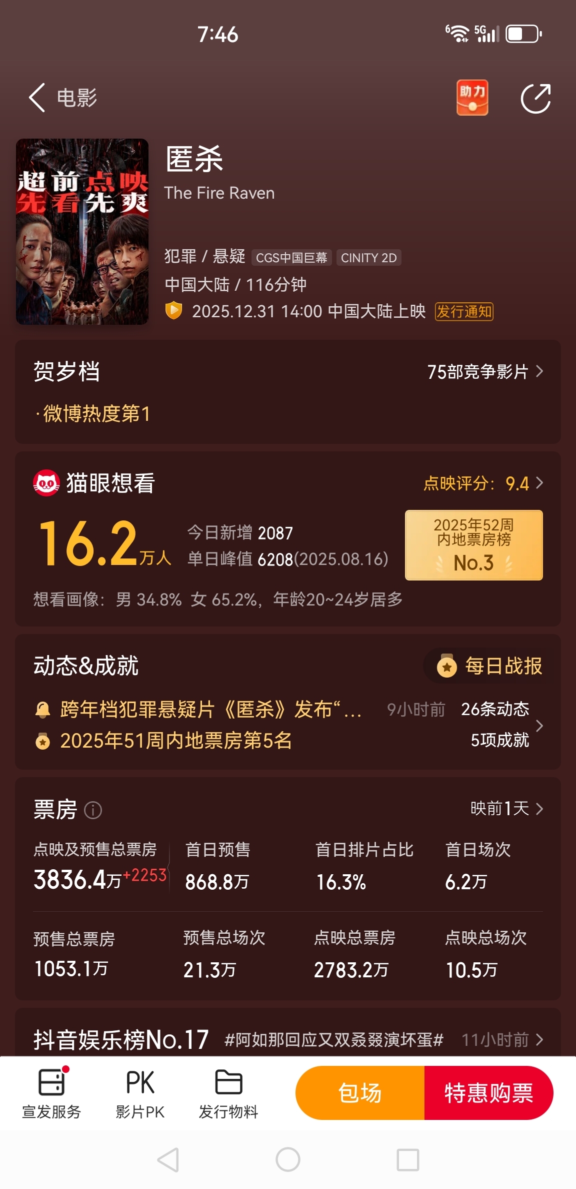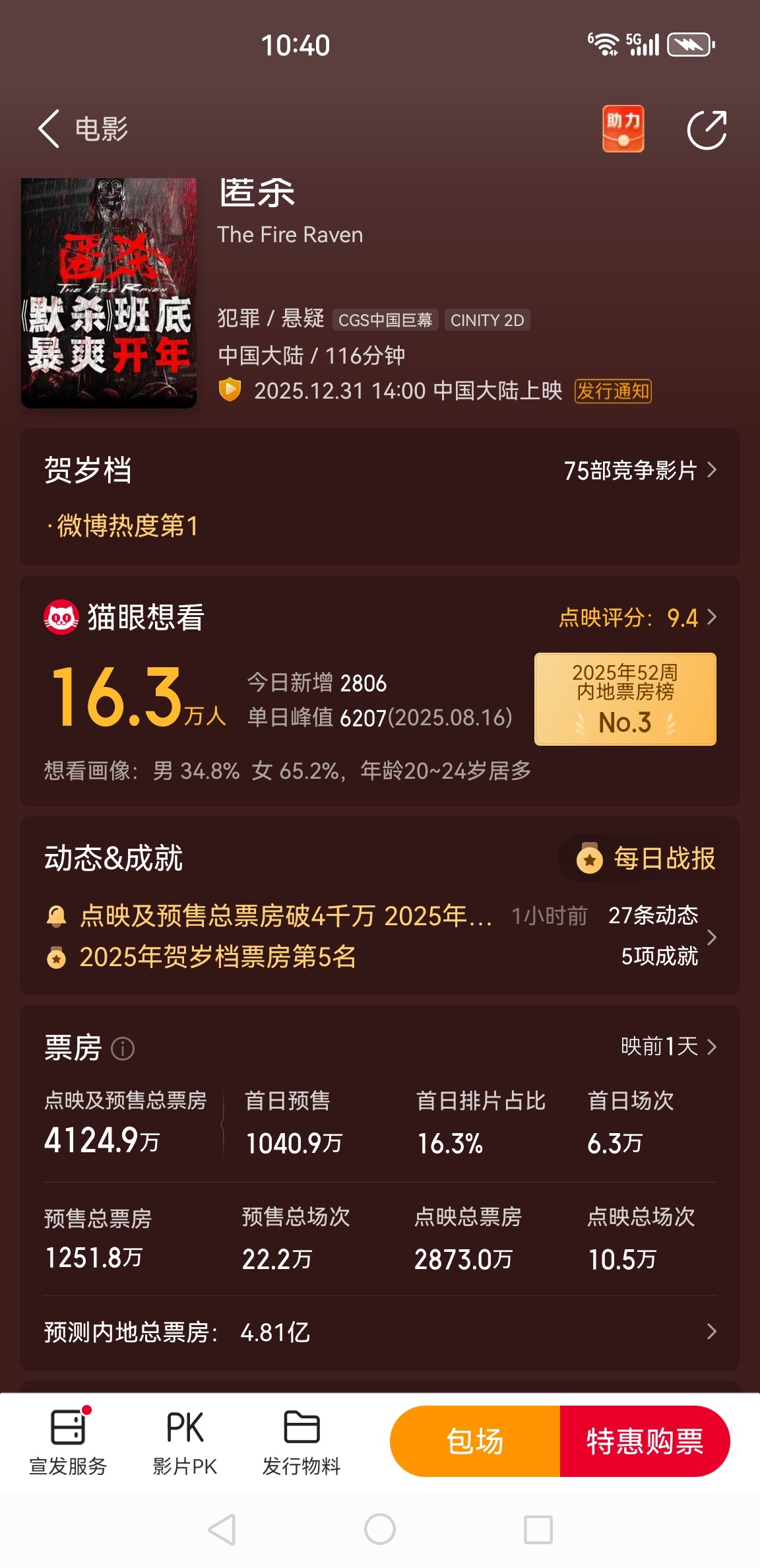$光线传媒(SZ300251)$ 别瞎找上涨原因了,今天偏强走势是因为这个电影超预期,后续能不能继续强完全取决于这个电影明天首映情况!如果看好光线传媒的建议都去看看这部电影,我看了一下片段感觉拍得很不错,比三国的星空,什么上班好太多了,元旦档这部电影很有可能是黑马!