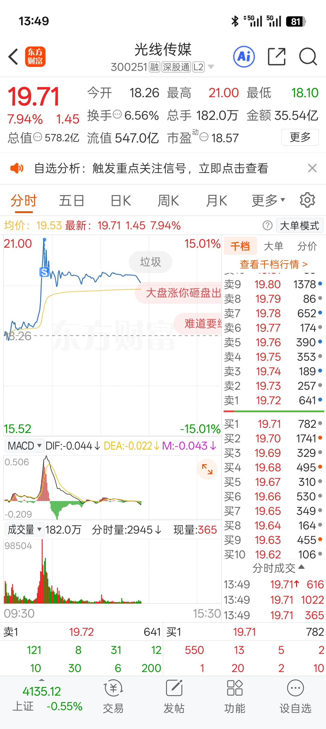 $光线传媒(SZ300251)$ 鄙人不才,卖在最高点