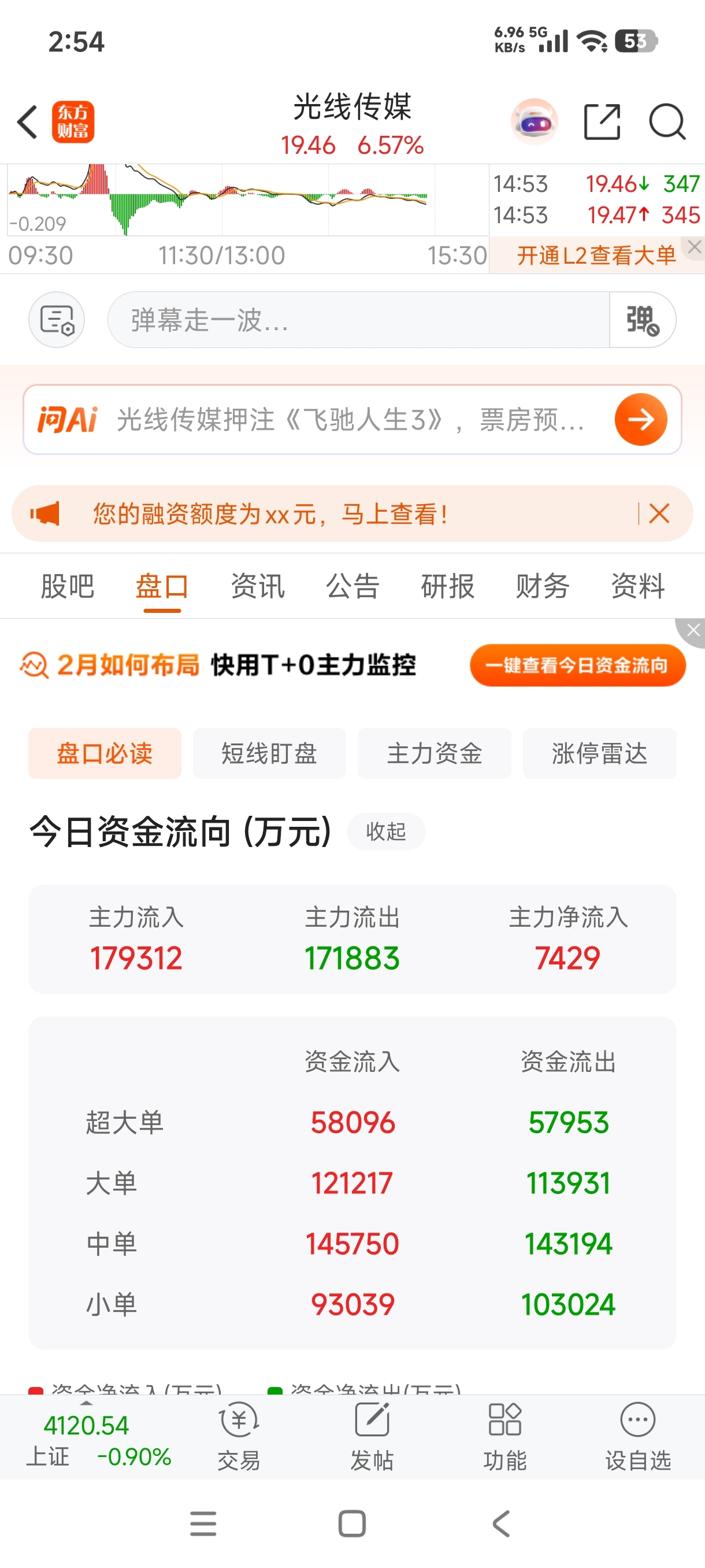 $光线传媒(SZ300251)$ 这叫流出几个亿,主力净流入7000多万,好吧