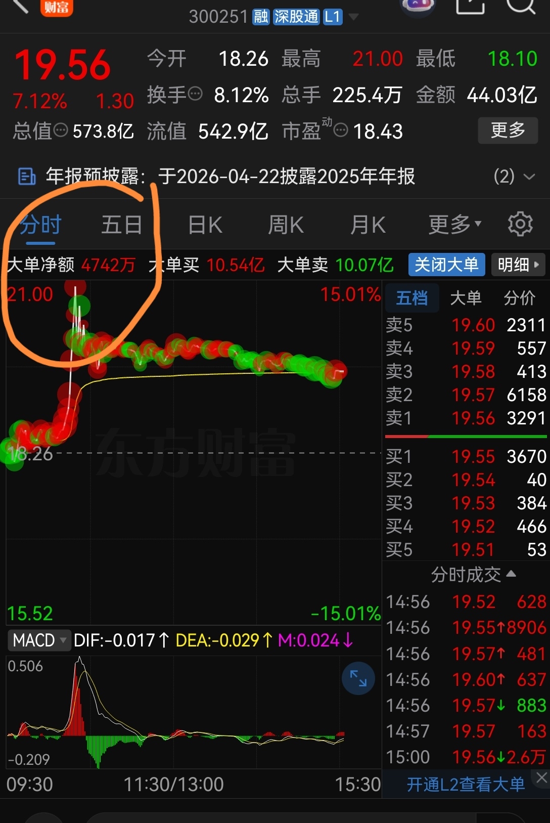$光线传媒(SZ300251)$ 大单进流入4000万