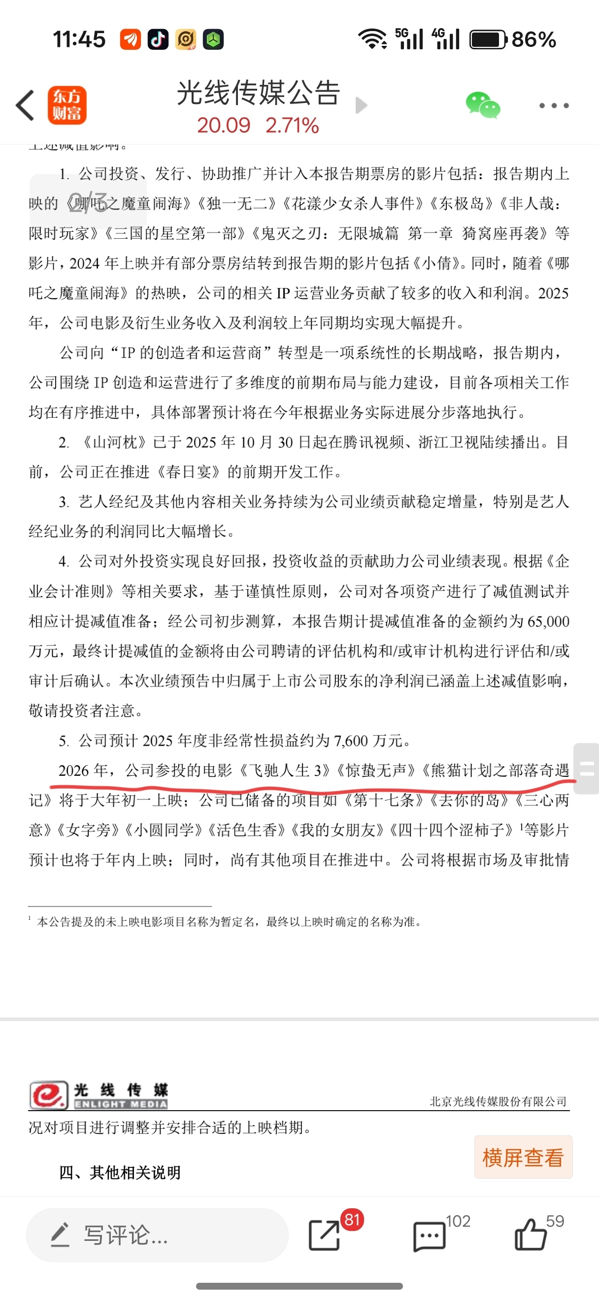 $光线传媒(SZ300251)$ 热度前三的春节档电影你都参与了,你竟然不涨?