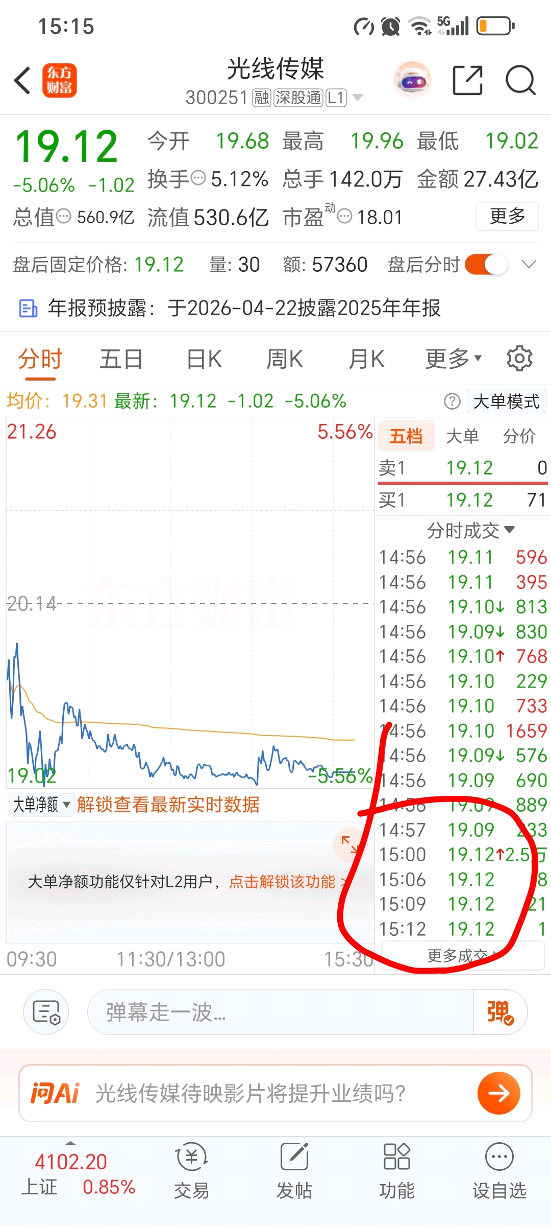 $光线传媒(SZ300251)$ 这是啥情况,3.12还有成交