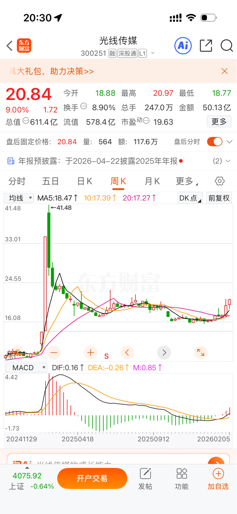 $光线传媒(SZ300251)$ 大胆预测,下周三到40元哈哈哈,大热卖中春节档电影