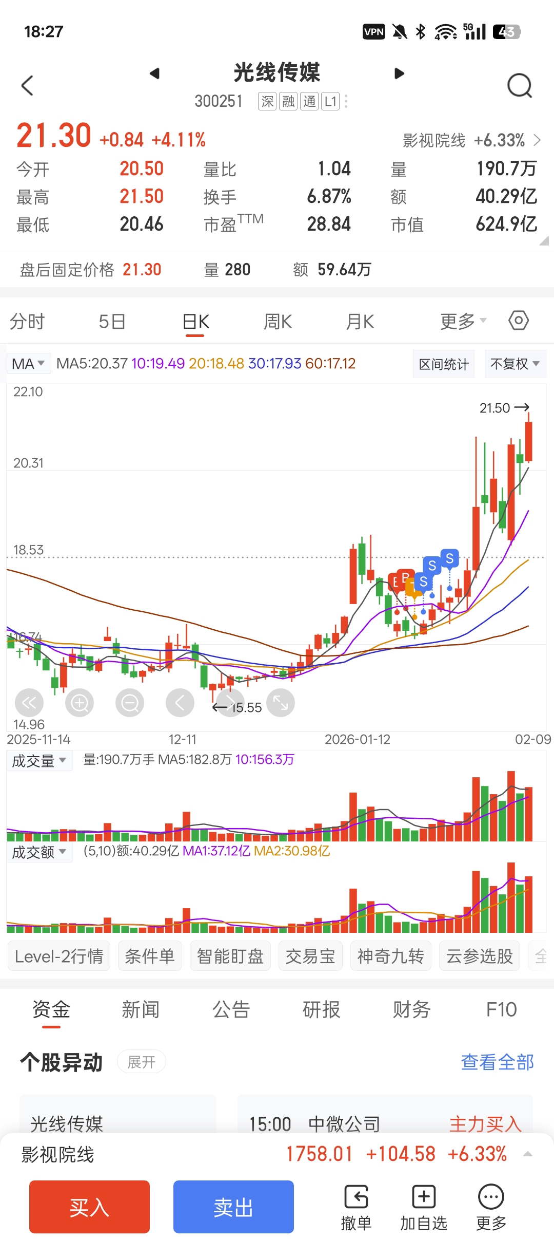 $光线传媒(SZ300251)$ 哈哈,虽然小仓位试玩,但是真的是走在黎明前