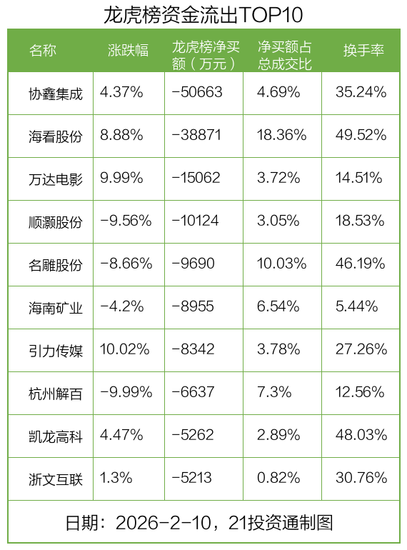 2月10日,26只个股龙虎榜出现了机构的身影,机构合计净卖出3.89亿元。具体来看,机构净买入14股,净卖出12股。