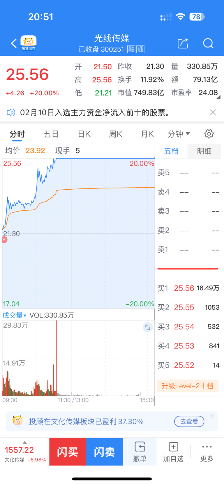$光线传媒(SZ300251)$ 小韭菜今天终于扳回了一局