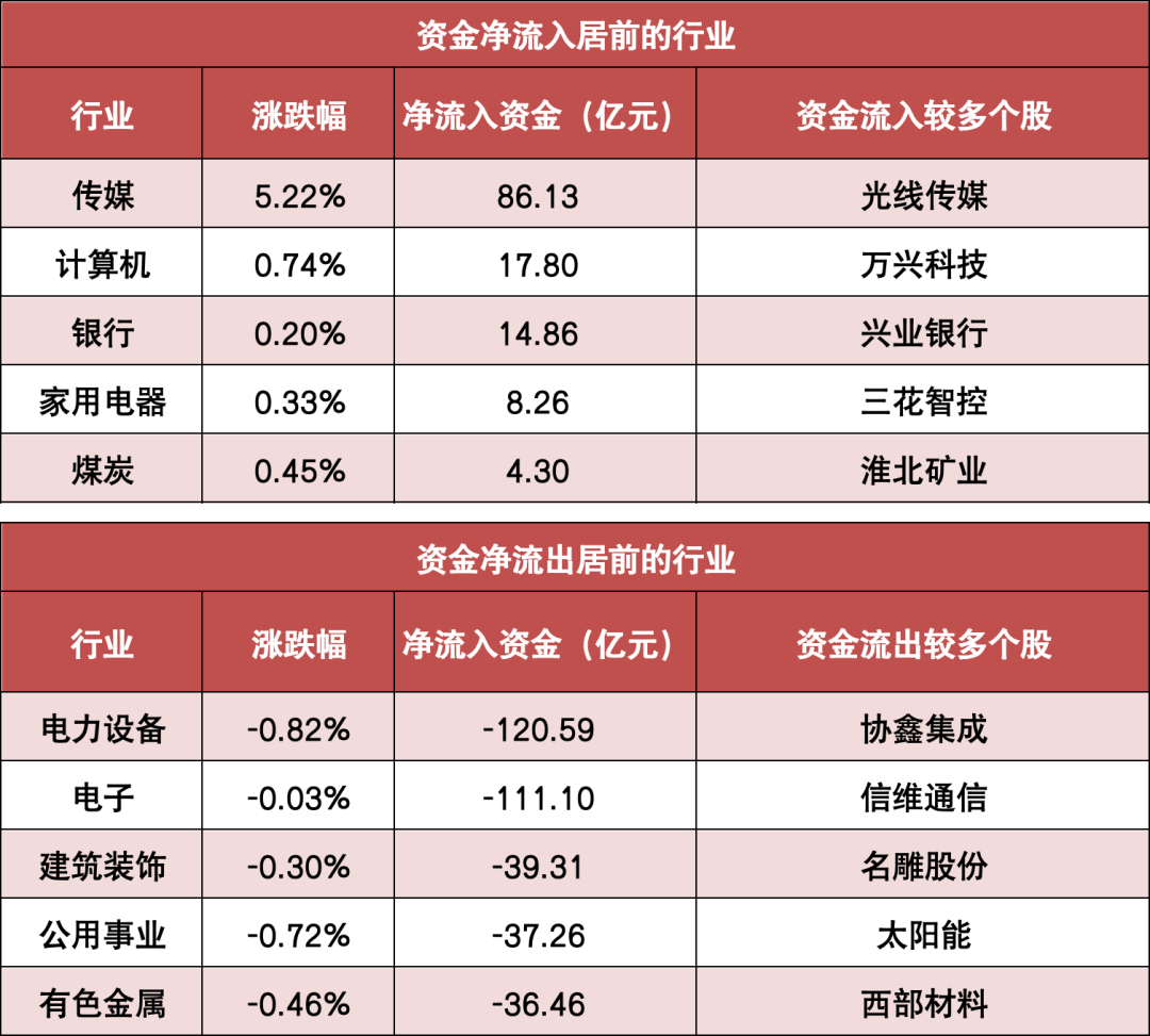 【10日资金路线图】两市主力资金净流出超320亿元 传媒等行业净流入居前