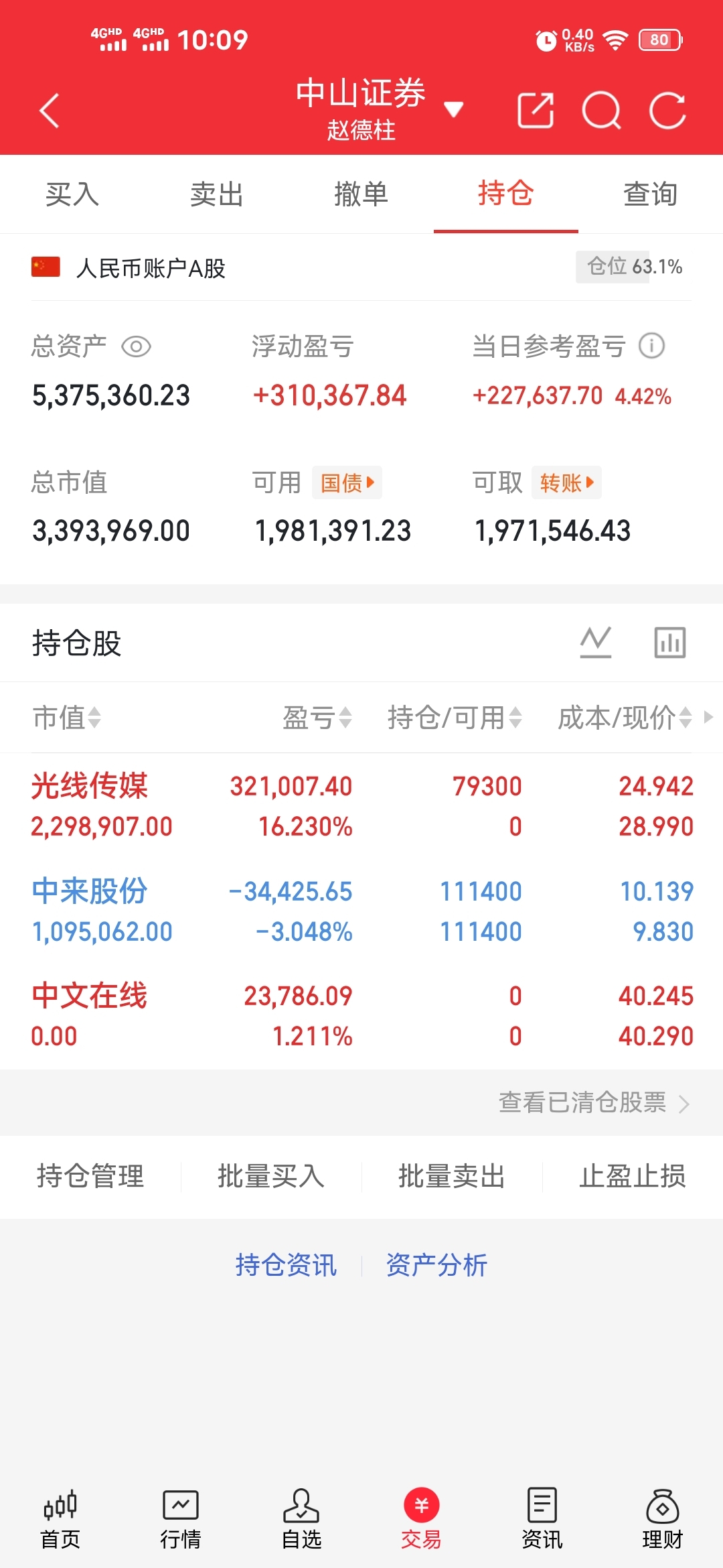 元旦后200W入市实盘记录:持有:中来股份卖出:中文在线买入:光线传媒(这个低开