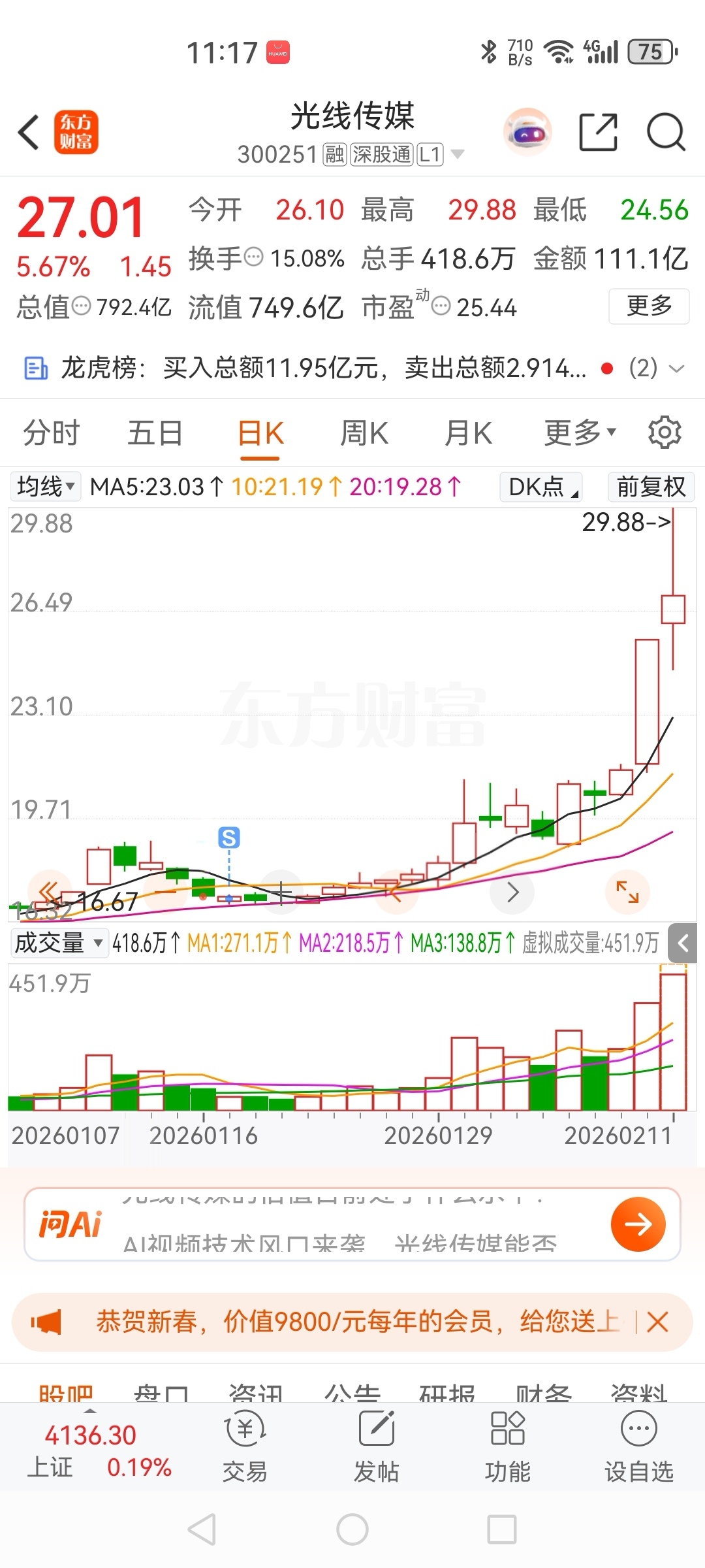 $光线传媒(SZ300251)$ 倒在了上涨之前,能不能退回去接我上车