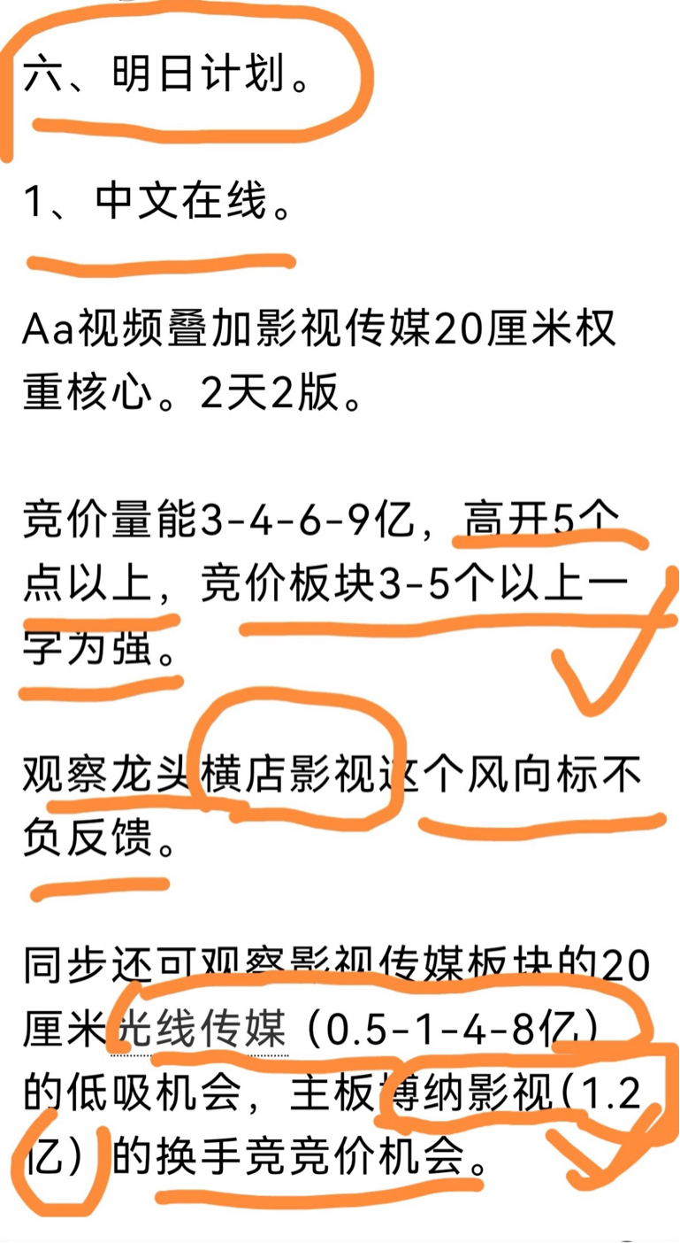 1、光线传媒。竞价量能2-2.8-4-7亿,水平线上1~2个点符合预期。