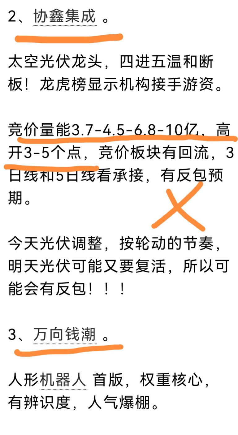 2、协鑫集成。竞价量能2-3-5亿,水平线±2厘米。高开为弱转强,竞价弱板块有回流,则有反包预期。