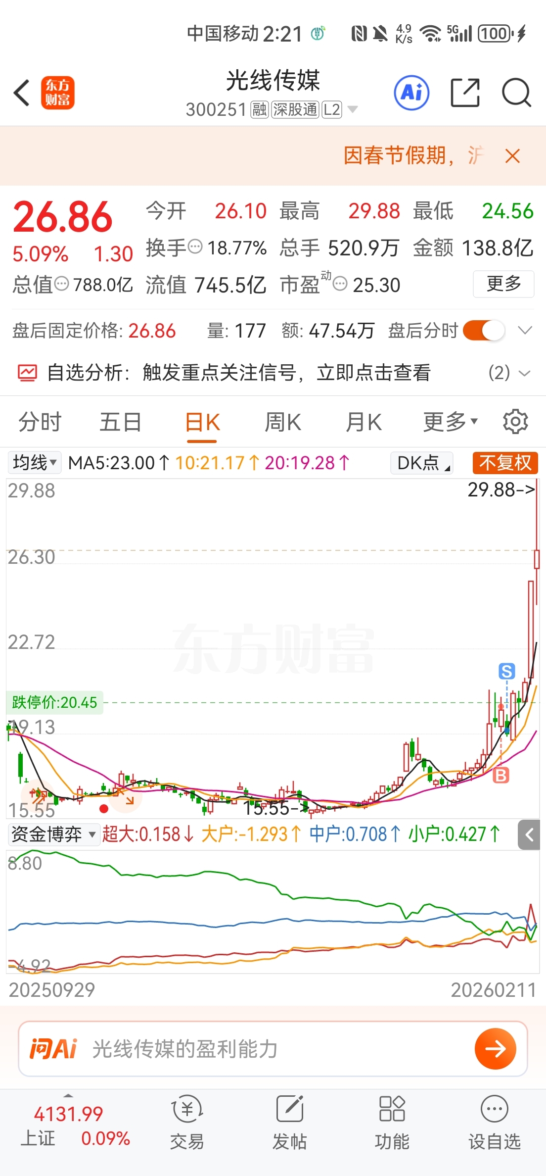 $光线传媒(SZ300251)$ 今天还要进