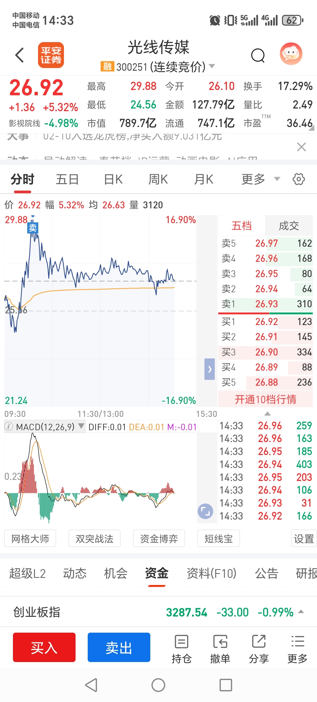 $光线传媒(SZ300251)$ 哈哈,赚13个,套顶了