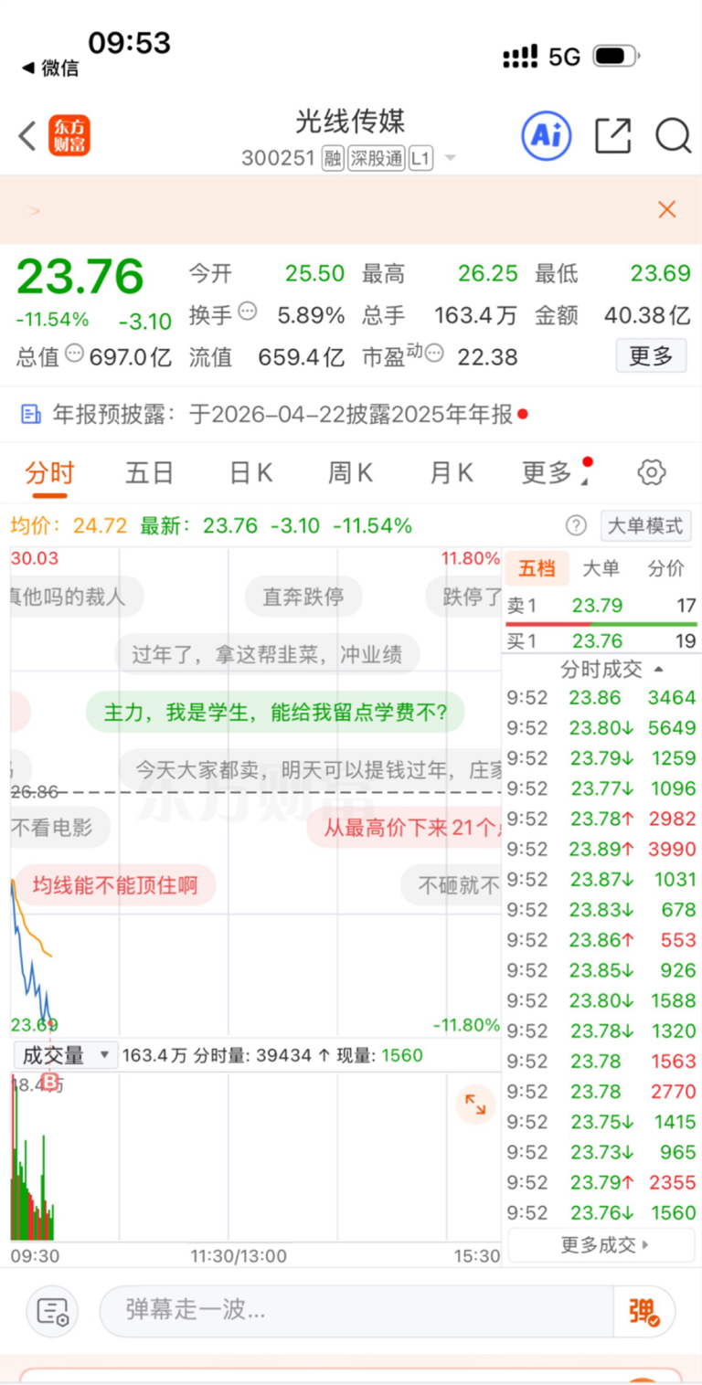 23.76选择低吸博弈$光线传媒(SZ300251)$ #强势机会# #实盘记录# #投资干货# #投资随笔#