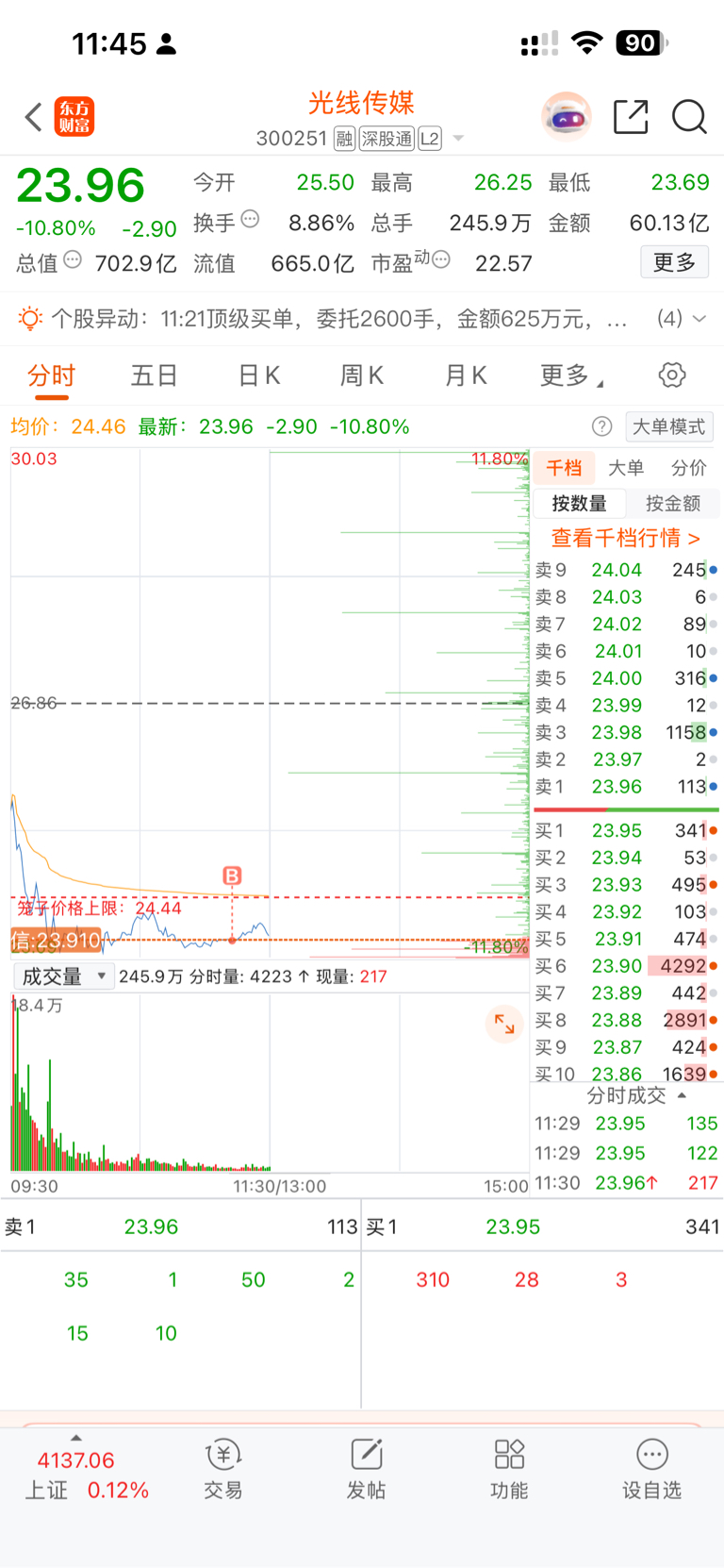 $光线传媒(SZ300251)$ 明天应该可以涨了 今天5日线都破不了