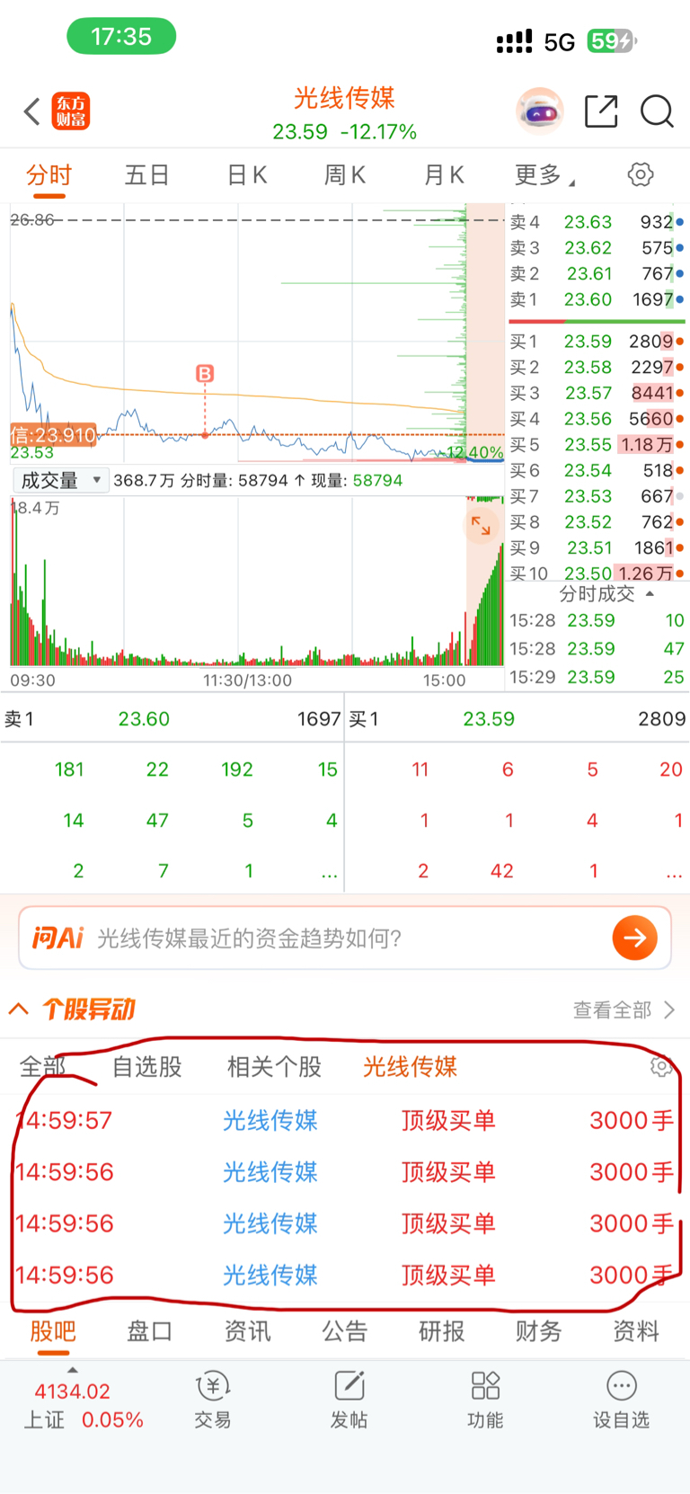 $光线传媒(SZ300251)$ 看样子买少了,明天至少反包一半阴线