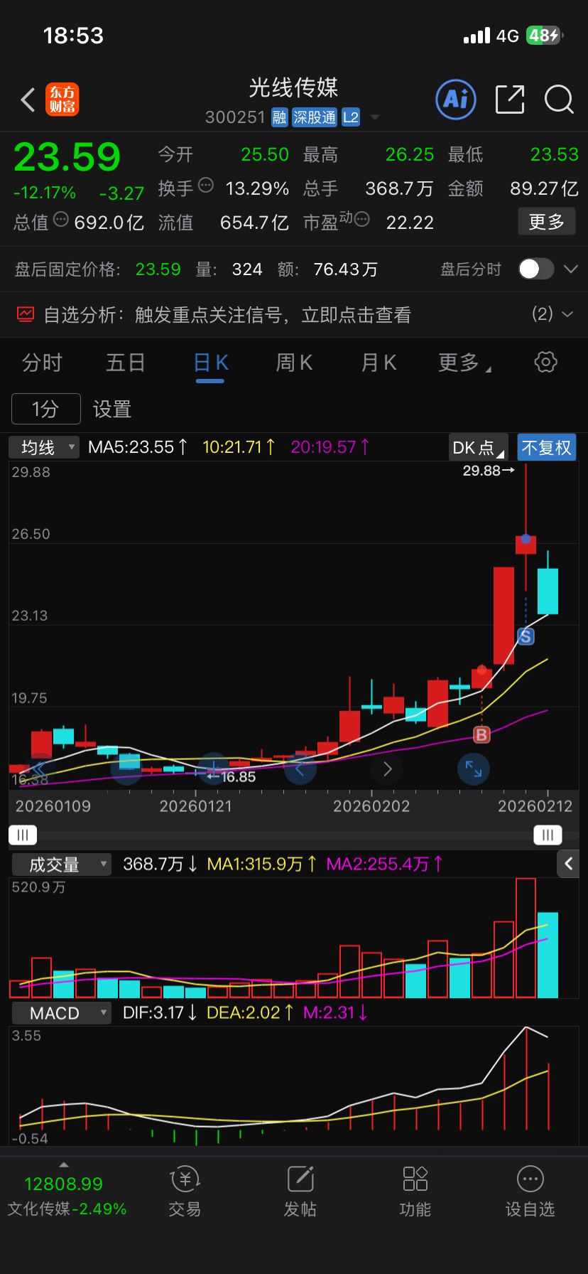 $光线传媒(SZ300251)$ 那么贪干什么,给了跑的机会,非得吃最后一口肉?#炒股日记# #强势机会# #实盘记录#