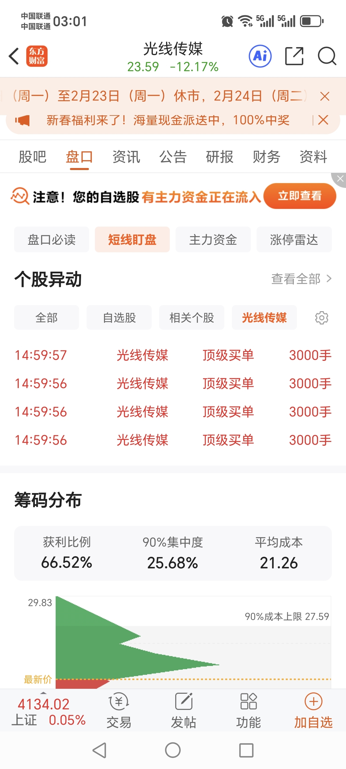 $光线传媒(SZ300251)$ 尾盘买入是什么意思?诱多吗?
