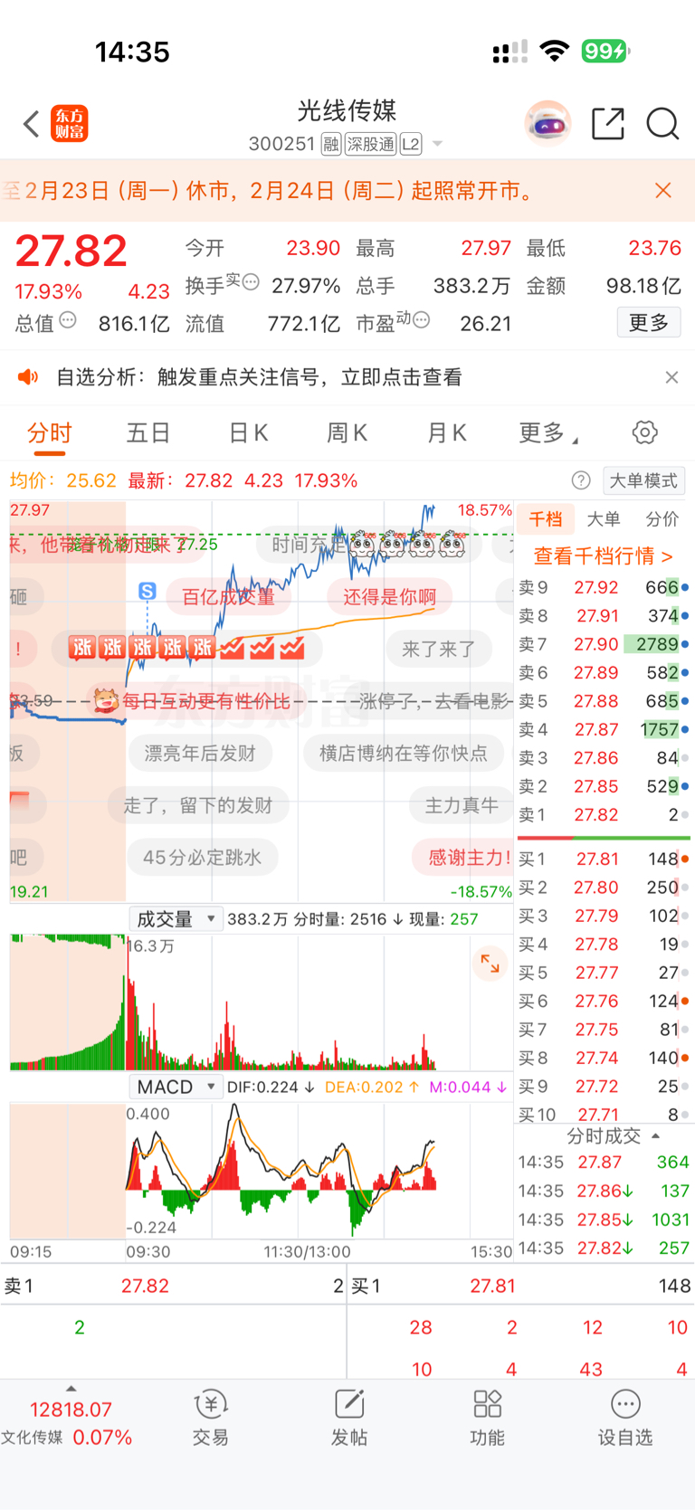$光线传媒(SZ300251)$ 拍断大腿啊
