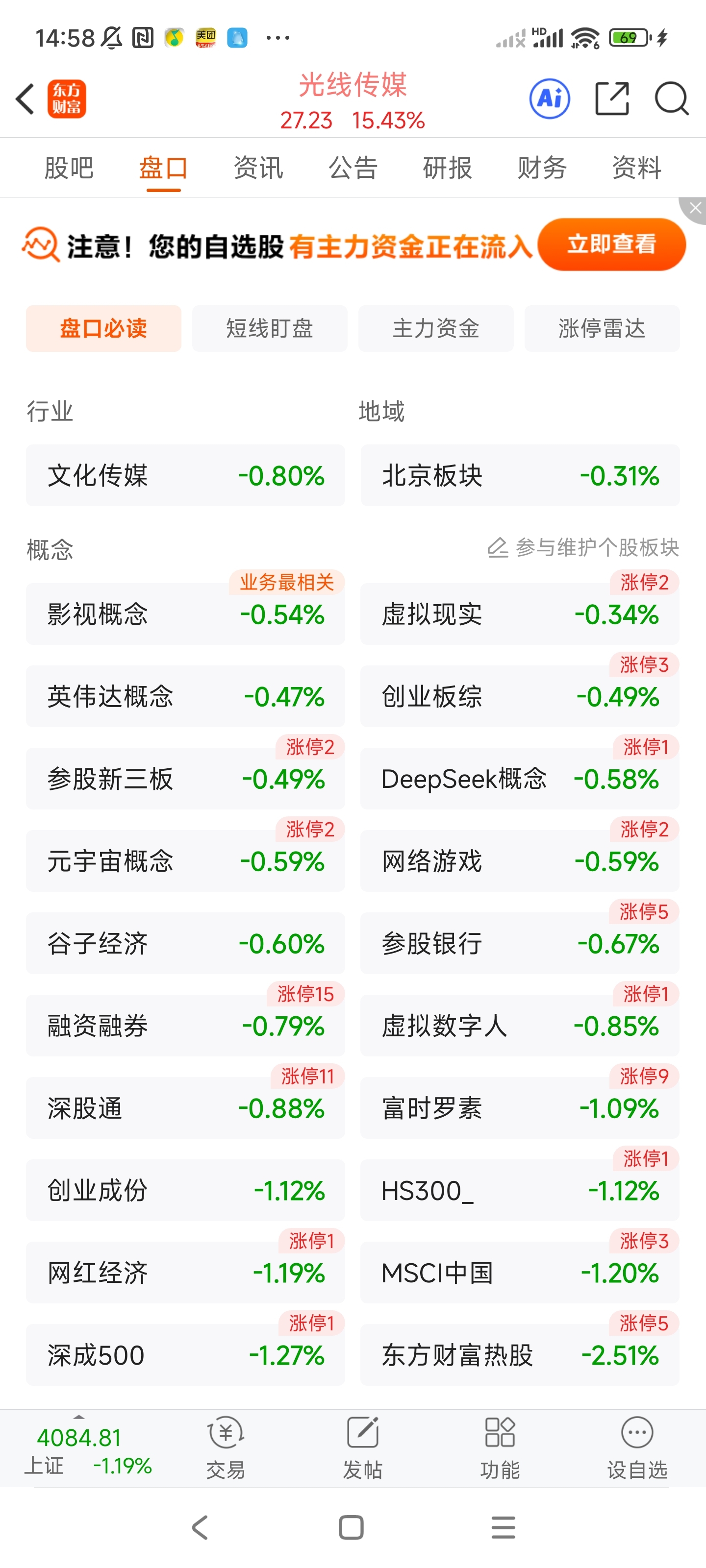 $光线传媒(SZ300251)$ 今天已经很棒了,影视板块并没有加速,没有量化说明这个板块还有预期,今天我早盘进的,如果我现在能卖肯定卖了去陕西旅游了哈哈。