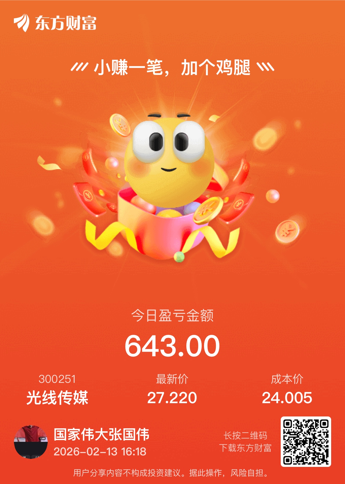 温馨提示: 1.根据《证券法》规定,禁止编造、传播虚假信息或者误导性信息,扰乱证券市场;2.用户在本社区发表的所有资料、言论等仅代表个人观点,与本网站立场无关,不对您构成任何投资建议。用户应基于自己的独立判断,自行决定证券投资并承担相应风险。《东方财富社区管理规定》