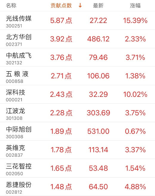 指数贡献榜:光线传媒贡献5.87点