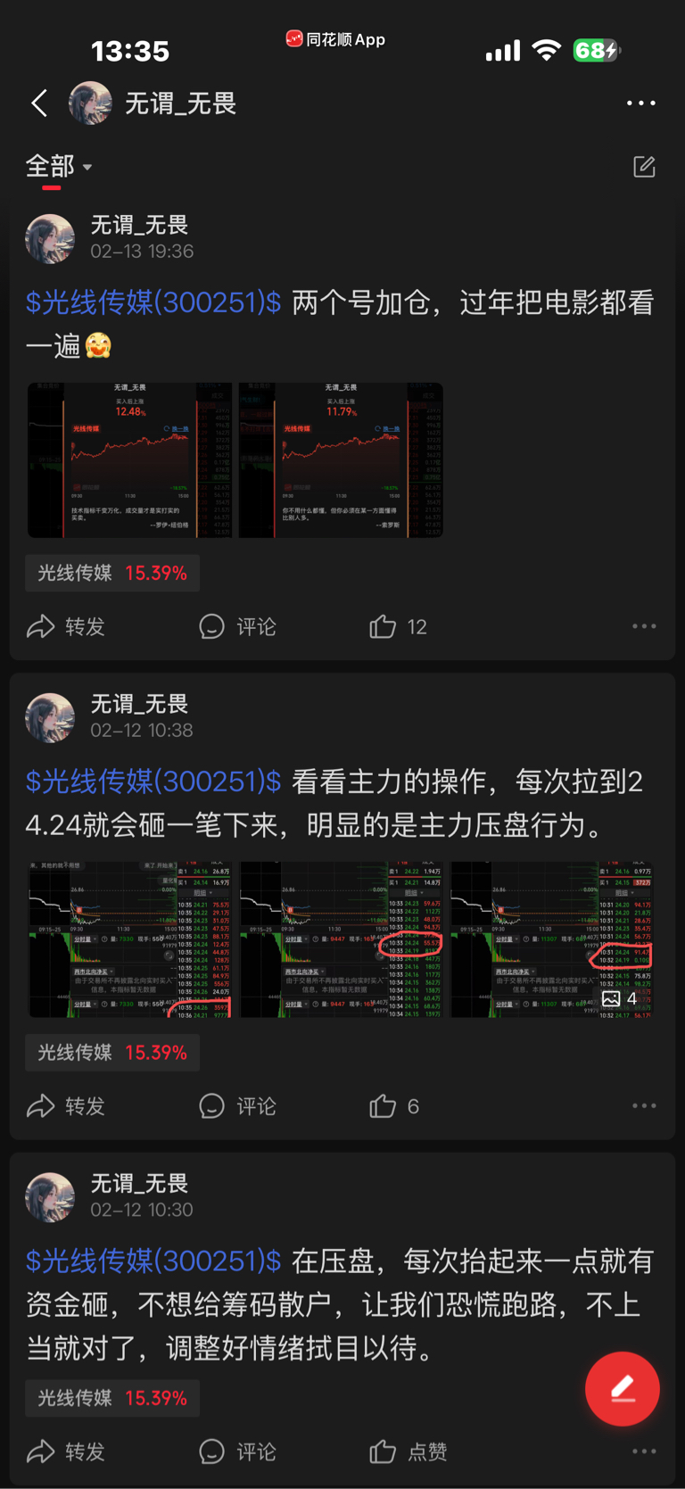 $光线传媒(SZ300251)$ 这个裤衩子都亏光的,时时刻刻都在这里黑,跟个小丑似的,我从12.22介入拿到现在,已经有50%的利润,去年哪吒的爆火是开端,光线赚到钱布局发展更强的项目和投资,可以说他的价值还不会在此止步,这个唱空的目光短浅毫无格局的人在这里喊,越是能体现光线的强势和大好预期!