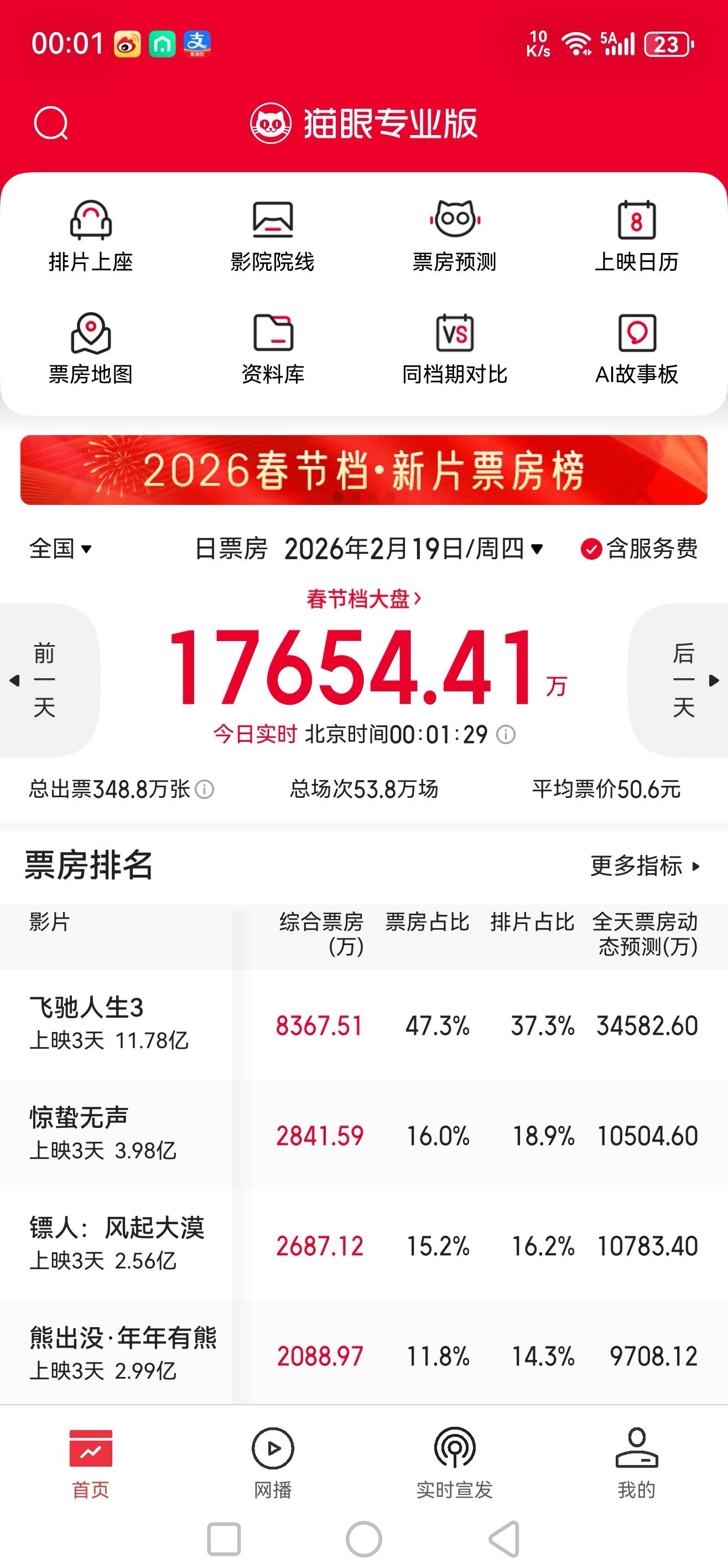初三预售:飞驰人生3只有3.5个亿,比初二少了,票房缩量了。整体票房比去年小很多