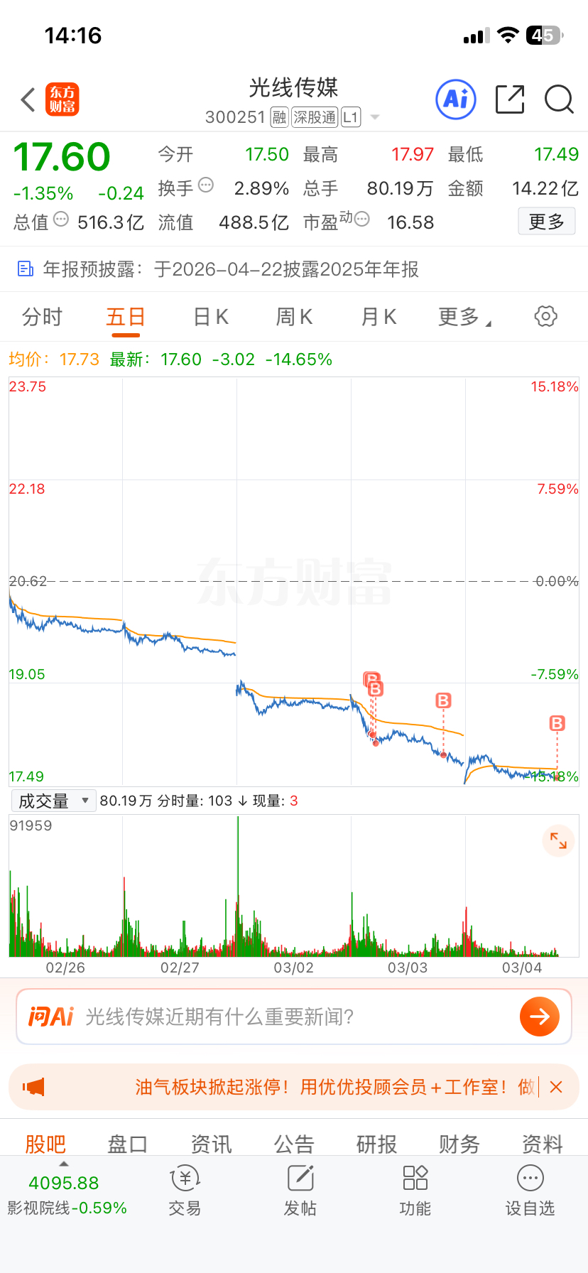 温馨提示: 1.根据《证券法》规定,禁止编造、传播虚假信息或者误导性信息,扰乱证券市场;2.用户在本社区发表的所有资料、言论等仅代表个人观点,与本网站立场无关,不对您构成任何投资建议。用户应基于自己的独立判断,自行决定证券投资并承担相应风险。《东方财富社区管理规定》