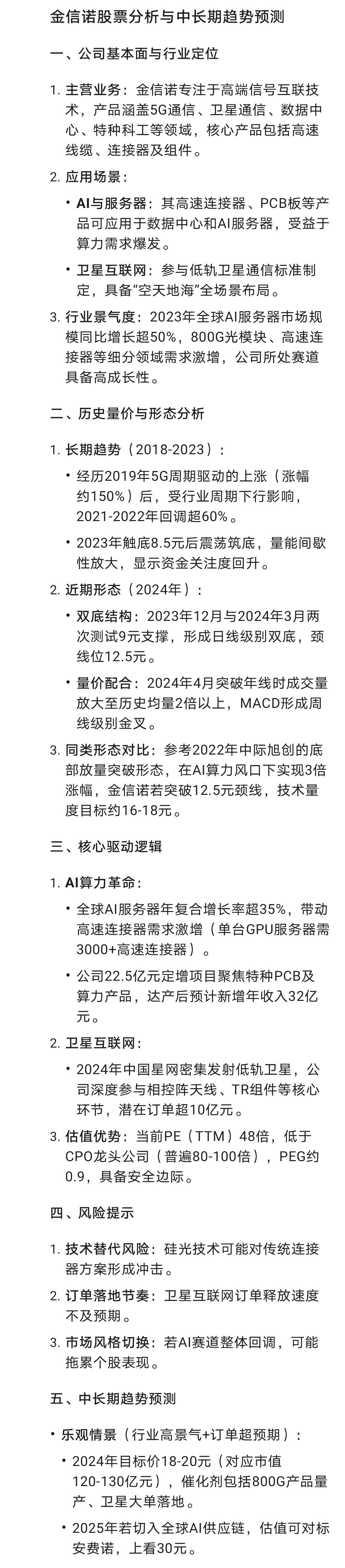 deepseek关于金信诺股价中长期预测