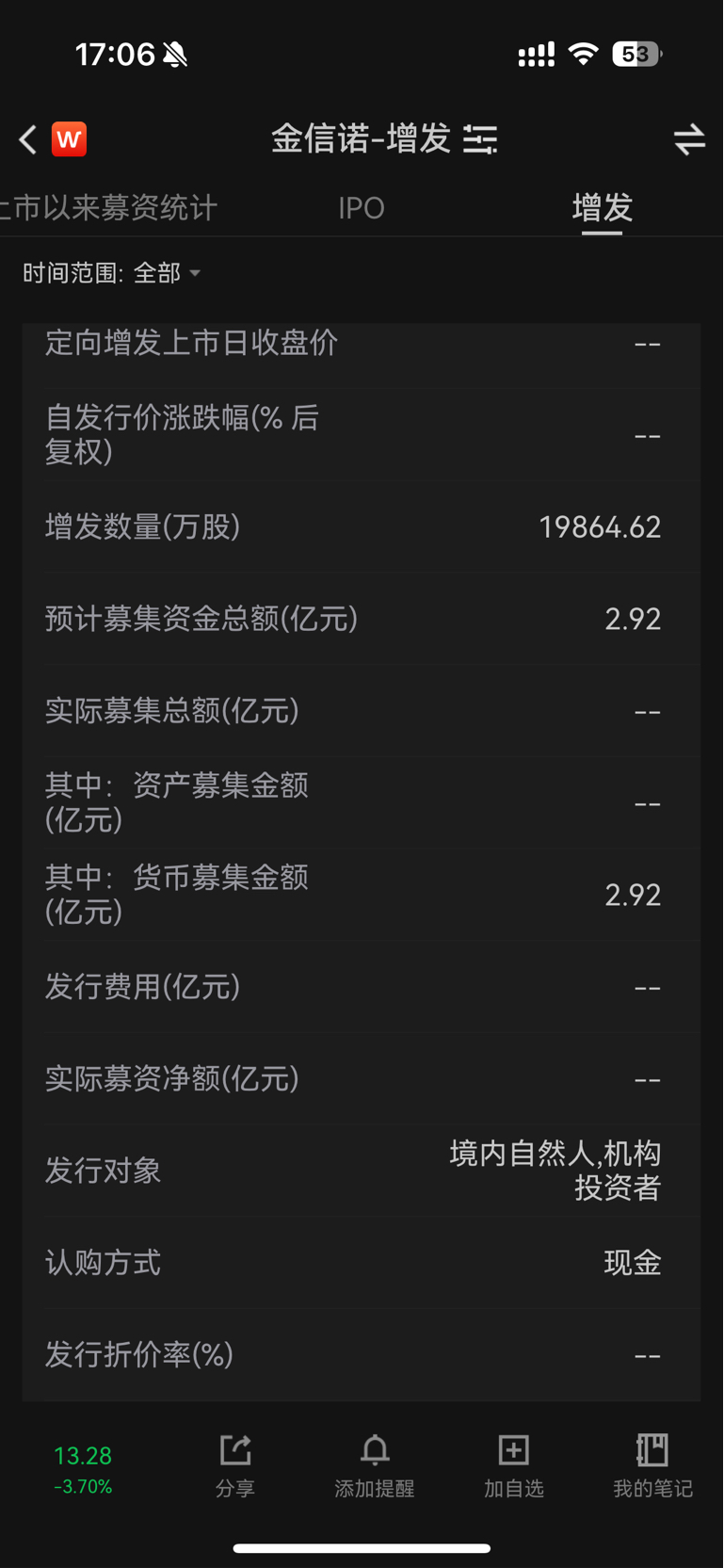 $金信诺(SZ300252)$ 发行近2亿股、募集3.92亿资金