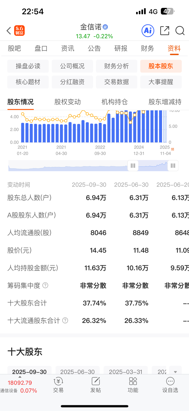 $金信诺(SZ300252)$ 筹码过度分散,每次一拉高就派发,这才是最大的利空,没有资金收集筹码,都在散户手里,怎么可能拉的动