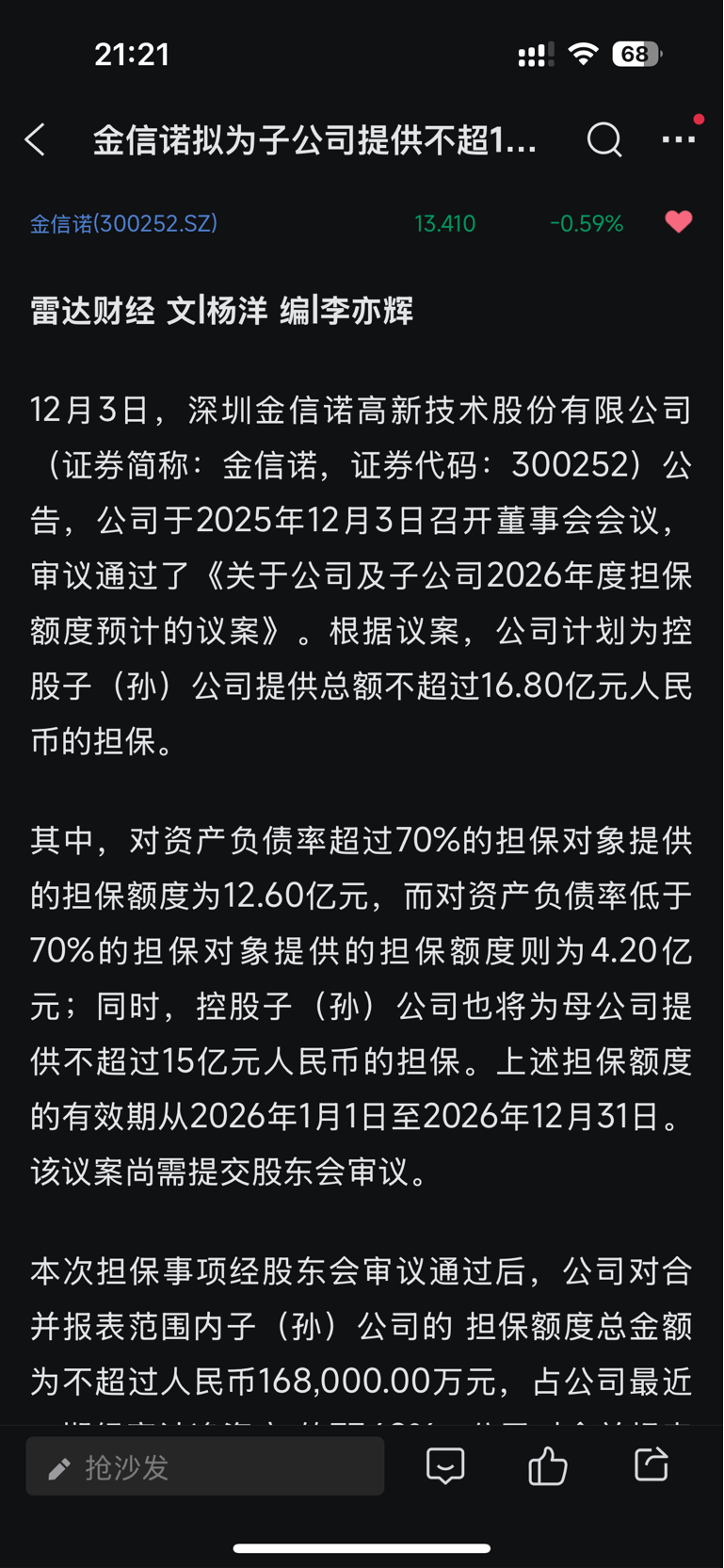 $金信诺(SZ300252)$ 为啥跌,同志们看清楚