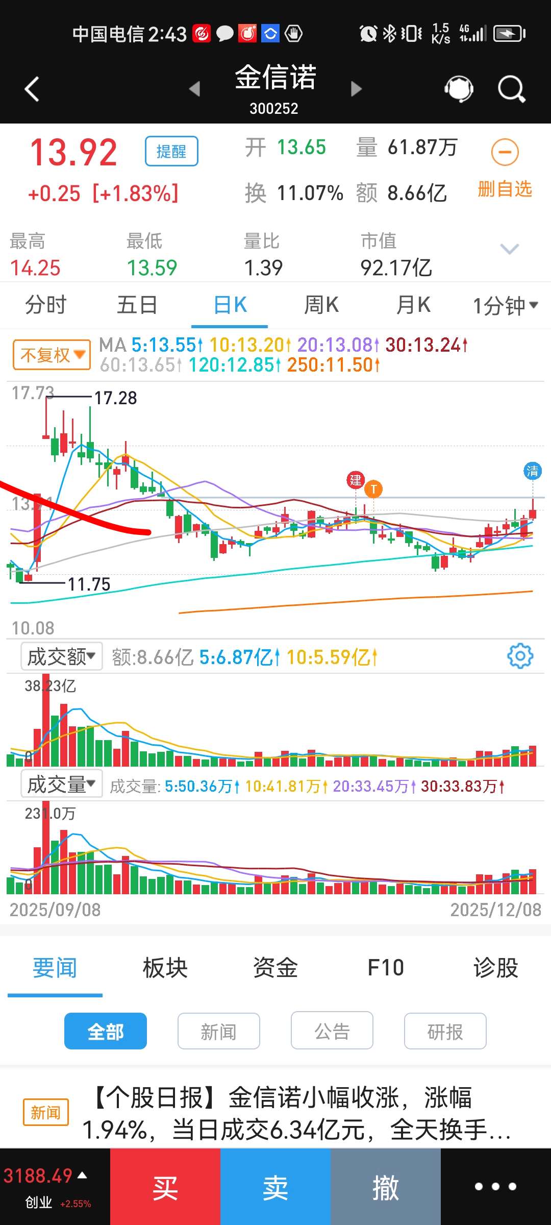 套了一个月,今天早上14.01出了,没卖在高点,不知道是对是错