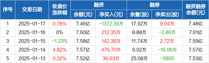 卫宁健康:融资净偿还1372.39万元,融资余额7.46亿元(01-17)