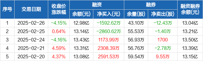 卫宁健康:融资净偿还1592.62万元,融资余额12.98亿元(02-26)