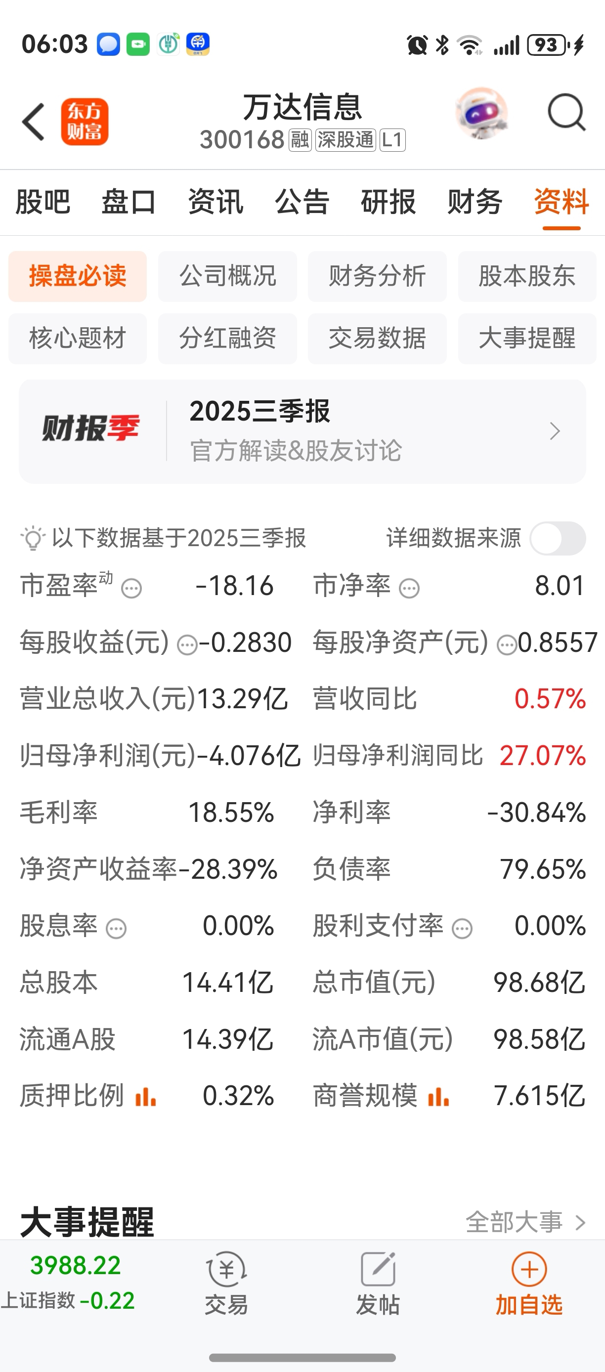 哈哈要问三贱客哪家强,万达信息来帮忙(唯一亏损中见红色字体冲喜的)