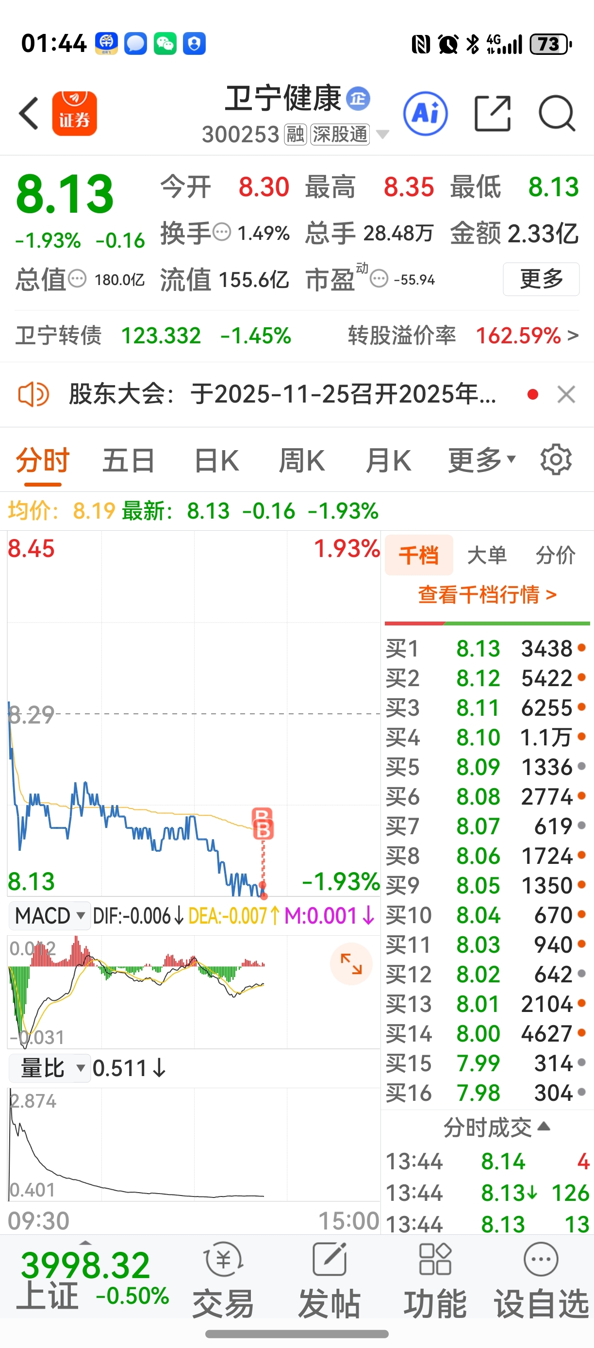 $卫宁健康(SZ300253)$ 打短吃这小庄家的肉肉来了!
