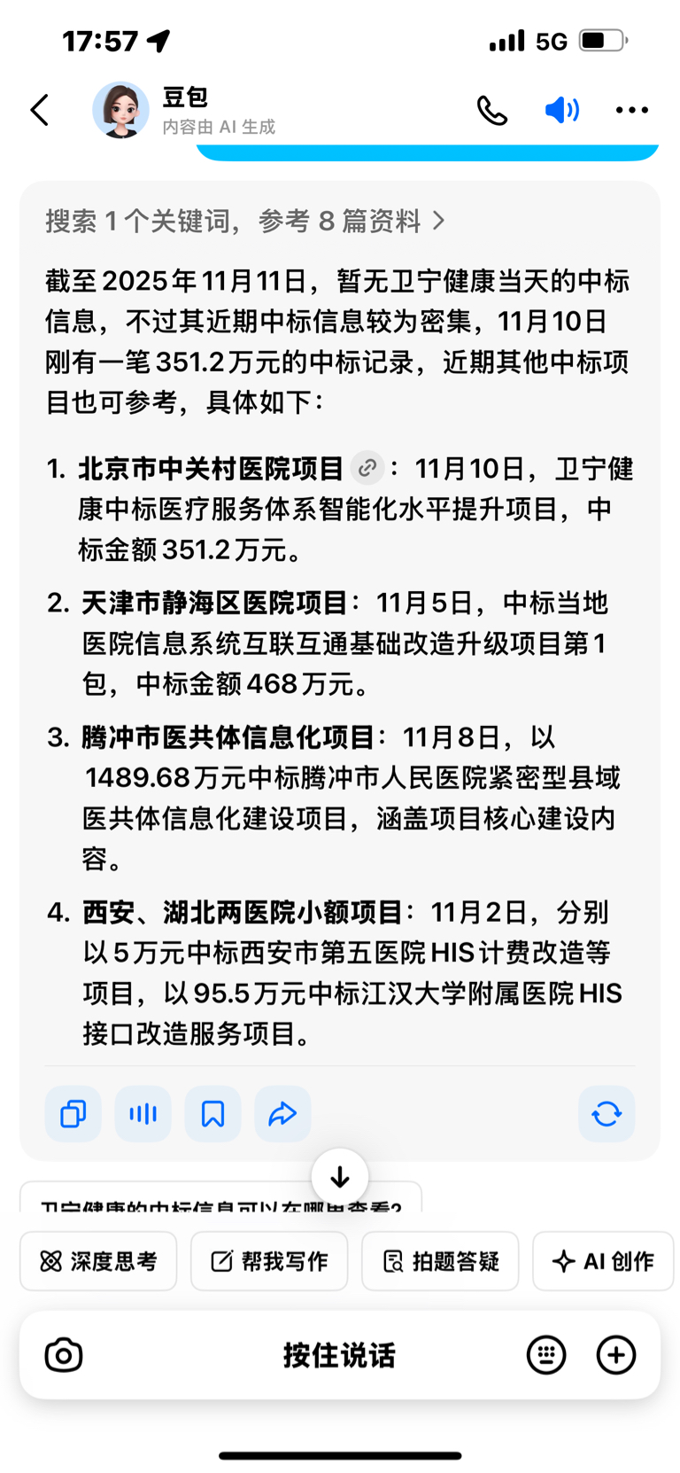 10月11月卫宁健康中标密集