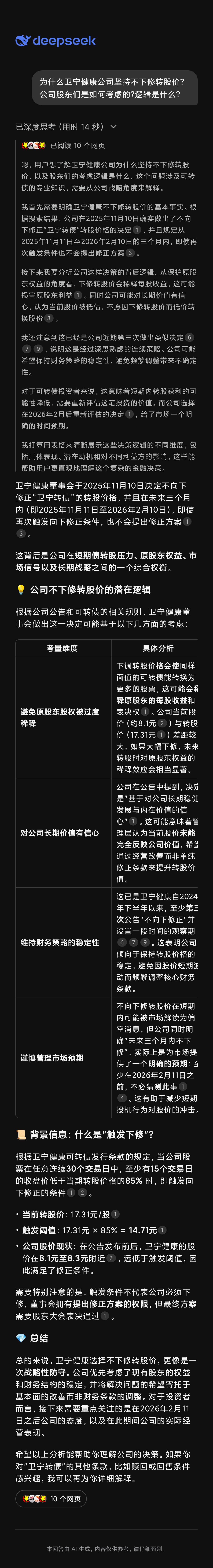 $卫宁健康(SZ300253)$ 为什么卫宁健康公司坚持不下修转股价?公司股东们是如何考虑的?逻辑是什么?