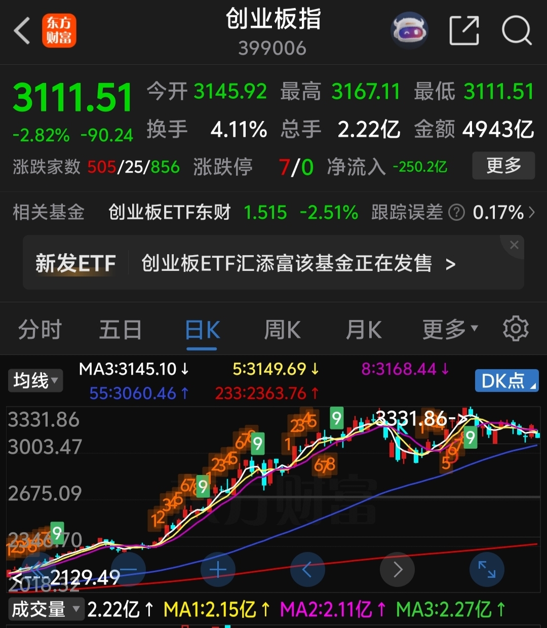 下周调整两天再起,创业板回踩55天线开始做双顶,最后的逃命机会