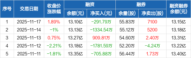卫宁健康:融资净偿还291.79万元,融资余额13.1亿元(11-17)