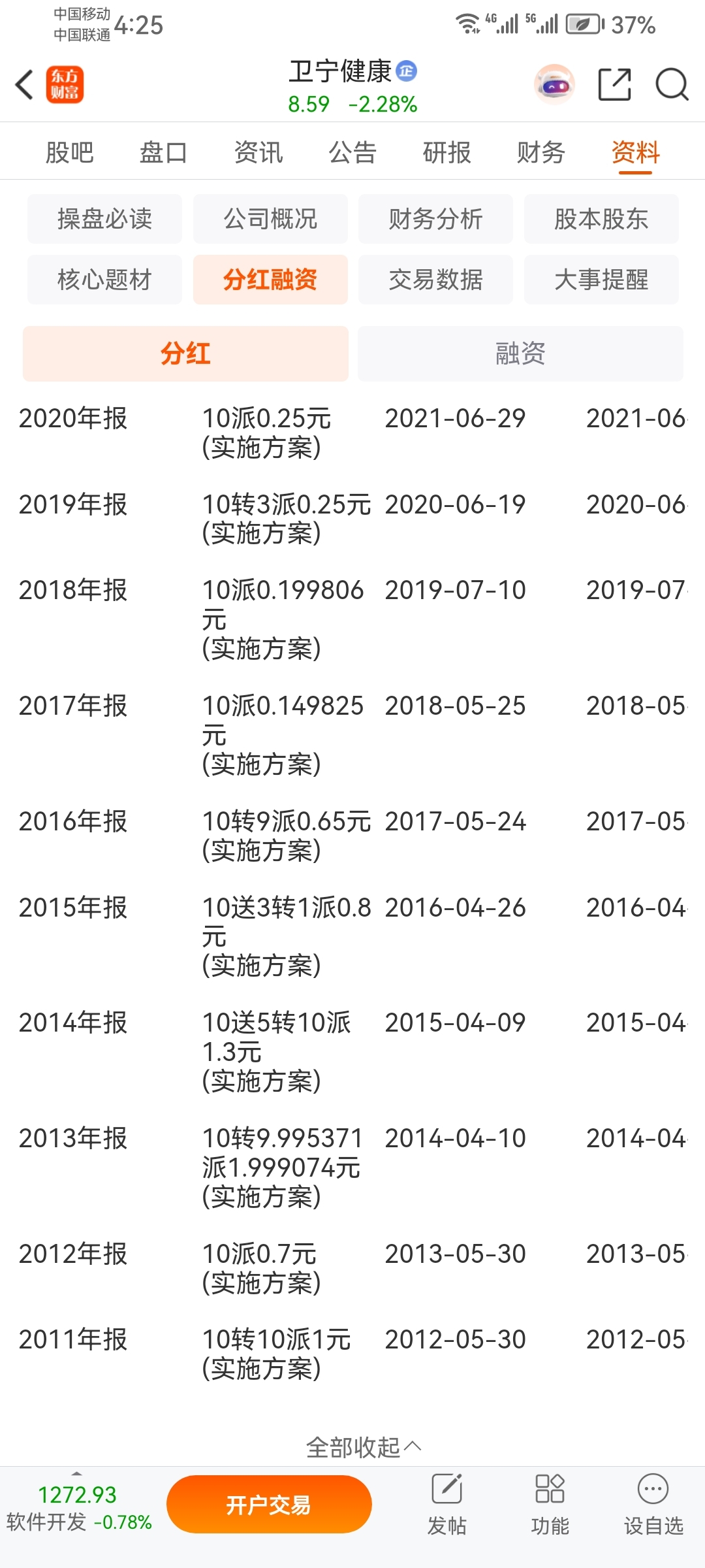 $卫宁健康(SZ300253)$ 分红真大方啊,现在不行了吧?