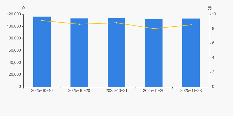 2025年10月10日至今,公司股东户数有所下降,区间跌幅为2.65%。2025年10月10日至2025年11月28日区间股价下降6.43%。
