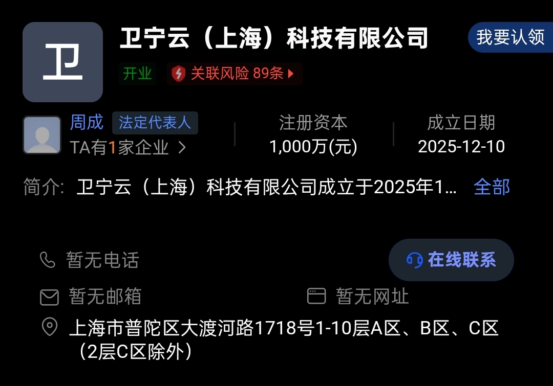 资料显示,卫宁健康新增对外投资公司。周成持股100%,成立日期2025/12/1