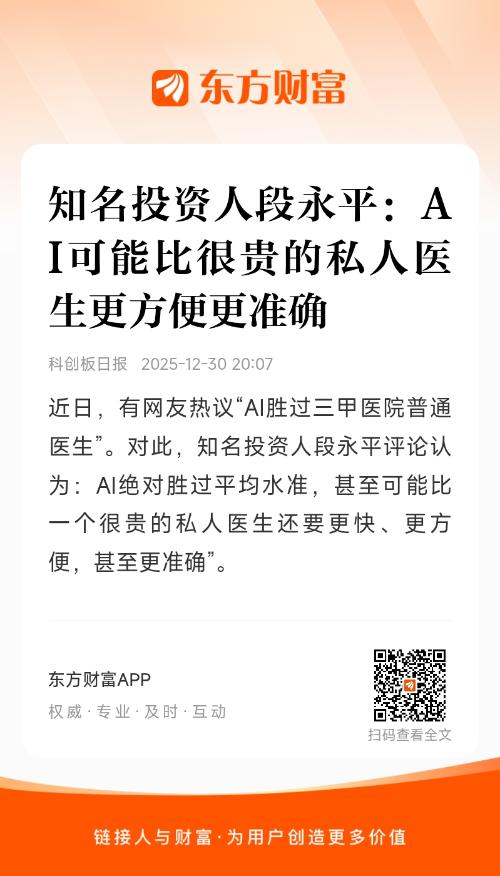 近日,有网友热议“AI胜过三甲医院普通医生”。对此,知名投资人段永平评论认为:AI绝对胜过平均水准,甚至可能比一个很贵的私人医生还要更快、更方便,甚至更准确”。近日,AI+医疗健康服务成为热点话题,相关板块也呈现普涨态势、热度持续上升。