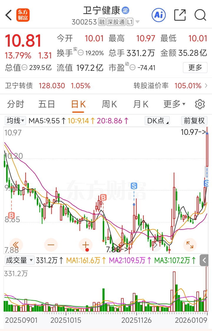 $卫宁健康(SZ300253)$ 赚了20%止盈了