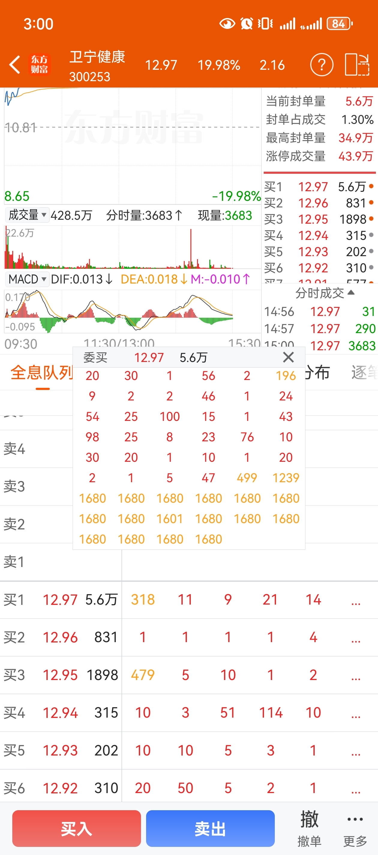 $卫宁健康(SZ300253)$ 尾盘又多加了2万多手封单这是做啥子