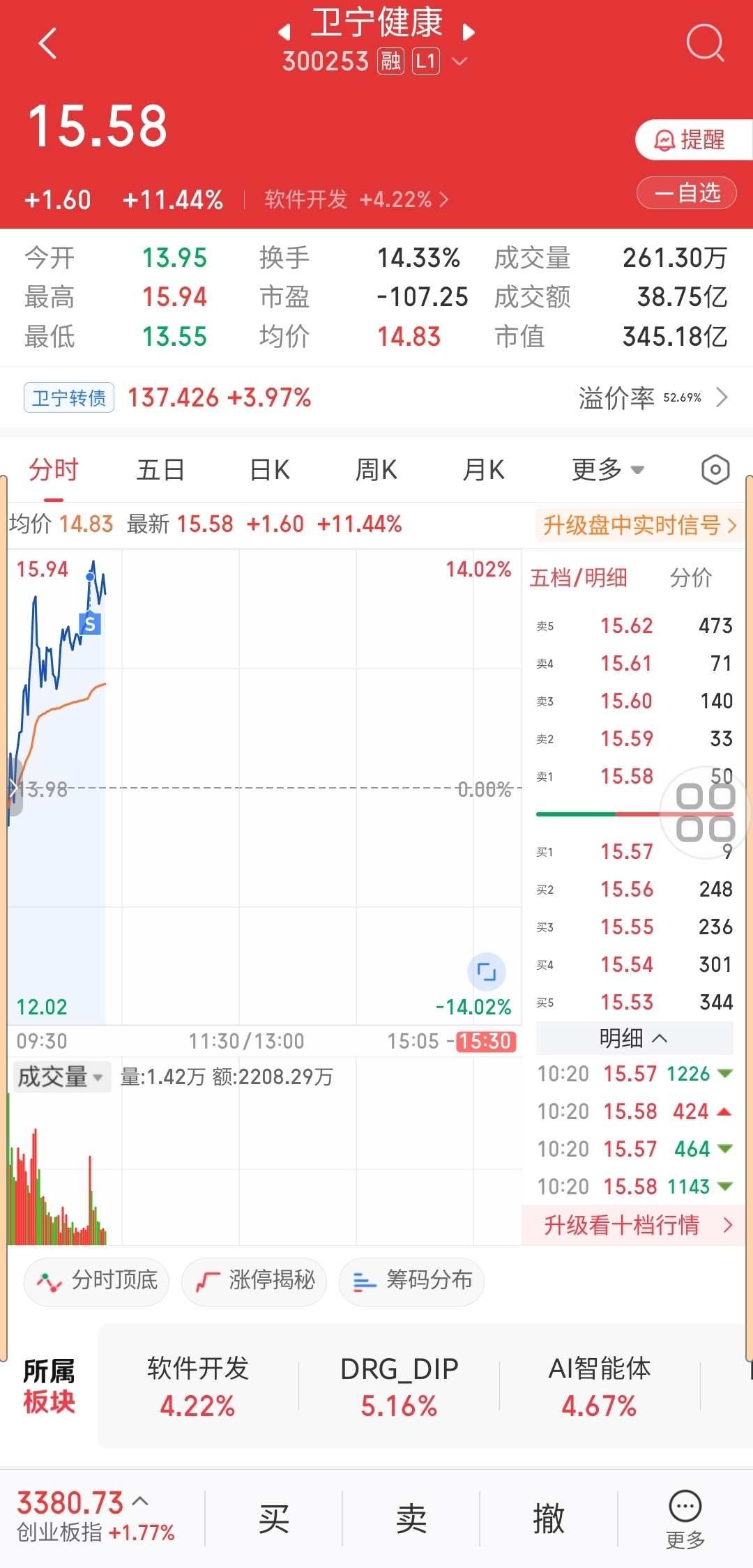 $卫宁健康(SZ300253)$ 被动拿了很久很久,上午都走了,还好有盈利,也算没白拿,纪念一下